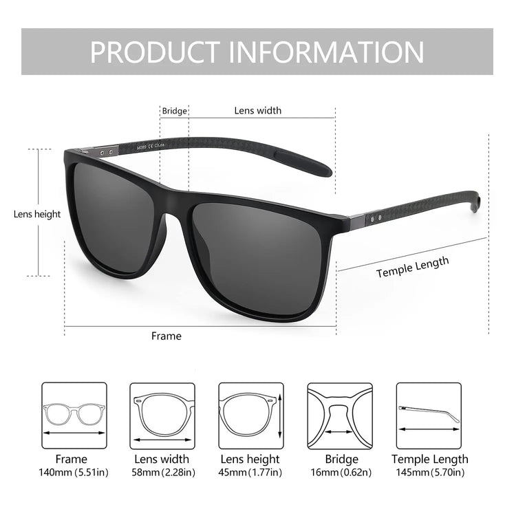 Square Polarized Sunglasses Men Ultralight Carbon Fiber